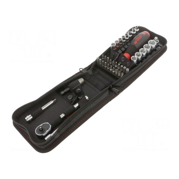 Zestaw kluczy nasadowych 6-kątnych obejmuje 40 elementów narzędziowych. Komplet został zaprojektowany do współpracy z gniazdami uchwytu o rozmiarze 1/4".