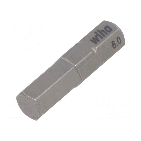 Końcówka wkrętakowa przeznaczona do obsługi śrub z gniazdem imbusowym. Narzędzie wyposażone jest w grot typu HEX o rozmiarze 6 mm oraz uchwyt o średnicy 1/4" (typ C6,3 mm).