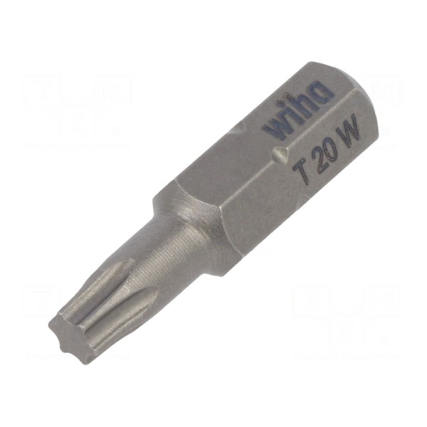 Końcówka wkrętakowa typu Torx o rozmiarze TX20 przeznaczona jest do prac montażowych z wykorzystaniem wkrętów z odpowiednim gniazdem. Element został wykonany ze stali chromowo-wanadowej, co zapewnia trwałość podczas użytkowania.