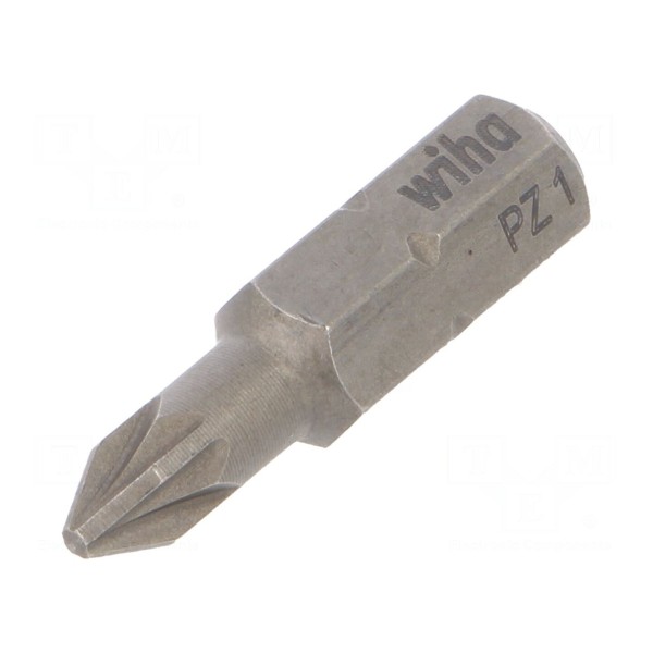 Końcówka wkrętakowa typu Pozidriv w rozmiarze PZ1 przeznaczona jest do współpracy z uchwytami o gnieździe 1/4" oraz standardzie C6,3mm. Element wykonany został ze stali chromowo-wanadowej i poddany procesowi hartowania, co wpływa na jego parametry użytkowe podczas prac montażowych.