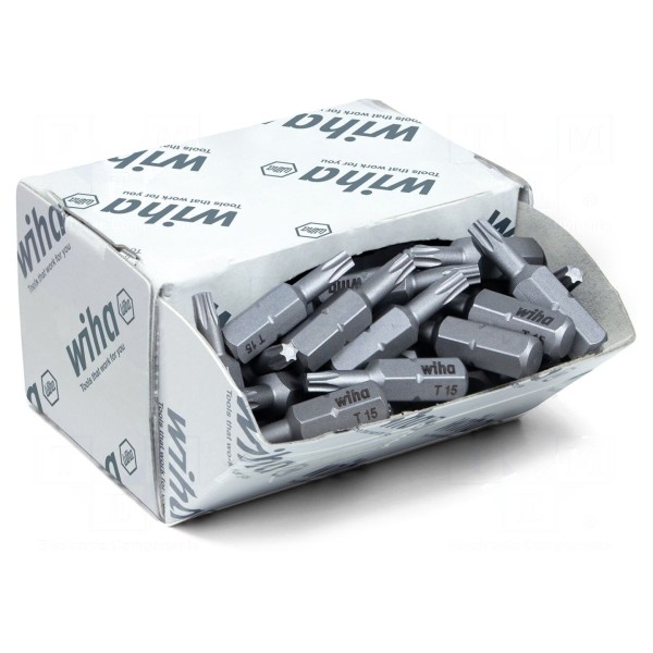 Końcówka wkrętakowa typu Torx o rozmiarze TX15 przeznaczona jest do pracy z uchwytami o gnieździe 1/4" oraz standardzie C6,3mm. Element charakteryzuje się całkowitą długością wynoszącą 25mm.