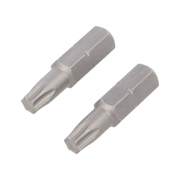 Końcówka wkrętakowa typu Torx o rozmiarze TX25 przeznaczona jest do pracy z wkrętami o odpowiednim gnieździe. Element posiada uchwyt C6,3mm, który jest przystosowany do mocowania w uchwytach 1/4".