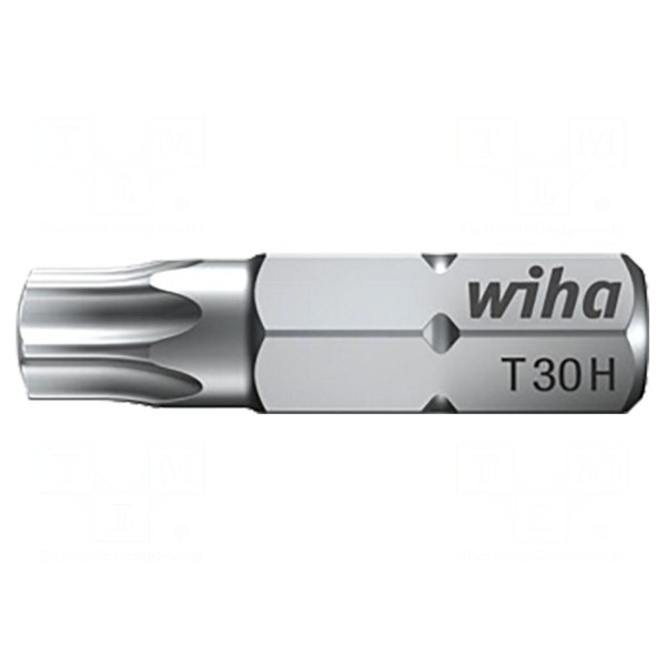 Końcówka wkrętakowa typu Torx z zabezpieczeniem posiada rozmiar grota T30H oraz gniazdo uchwytu w standardzie 1/4" (C6,3 mm). Element został wykonany ze stali chromowo-wanadowej i poddany procesowi hartowania, co wpływa na jego parametry użytkowe.