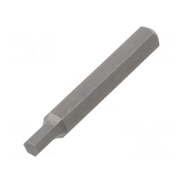 Końcówka wkrętakowa typu imbus przeznaczona jest do współpracy z uchwytami o rozmiarze gniazda 4mm. Element posiada grot o rozmiarze HEX 2,5mm, co pozwala na precyzyjne operowanie śrubami z gniazdem sześciokątnym.