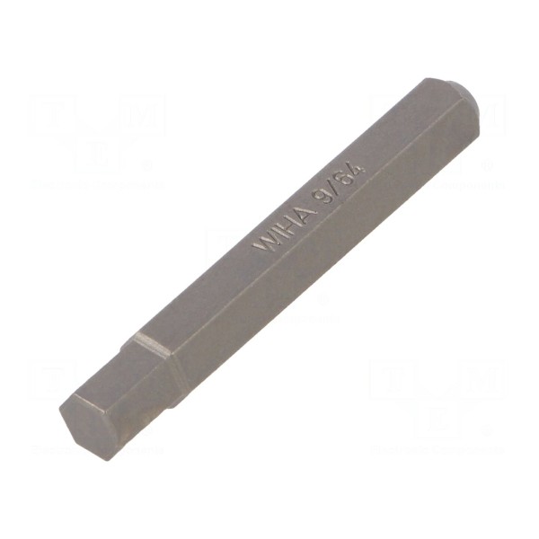 Końcówka wkrętakowa typu imbus przeznaczona jest do pracy z gniazdami sześciokątnymi o rozmiarze 9/64". Element wykonany został ze stali chromowo-wanadowej i poddany procesowi hartowania, co wpływa na jego trwałość podczas eksploatacji.