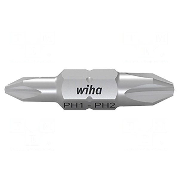 Końcówka wkrętakowa typu Phillips o rozmiarach grota PH1 oraz PH2. Wersja podwójna zapewnia uniwersalność podczas wykonywania prac montażowych z różnymi typami wkrętów.