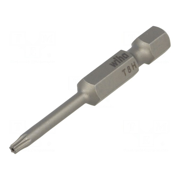 Końcówka wkrętakowa o profilu Torx z zabezpieczeniem w rozmiarze T8H przeznaczona jest do pracy z wkrętami typu Tamper Resistant. Element posiada mocowanie typu E6,3mm, co odpowiada standardowemu gniazdu uchwytu 1/4".