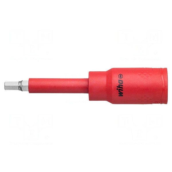 Nasadka izolowana typu imbus przeznaczona jest do pracy z połączeniami śrubowymi typu HEX o rozmiarze 4 mm. Narzędzie posiada gniazdo uchwytu o rozmiarze 1/2" oraz przystosowane jest do pracy pod napięciem do 1 kV.