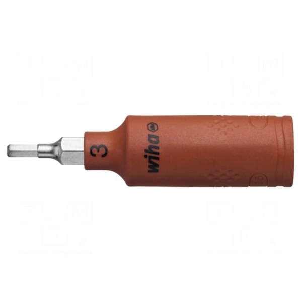 Nasadka imbusowa ElectricVario o rozmiarze HEX 3mm przeznaczona jest do pracy pod napięciem do 1kV. Narzędzie zostało wyposażone w gniazdo uchwytu w rozmiarze 1/4" oraz izolowaną konstrukcję, co umożliwia wykorzystanie go w instalacjach elektrycznych.