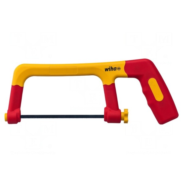 Piła ręczna to narzędzie w wersji izolowanej, zaprojektowane do prac w instalacjach elektrycznych. Konstrukcja opiera się na ramie wykonanej ze stali, co zapewnia sztywność narzędzia podczas cięcia. Długość całkowita wynosi 300mm, natomiast długość brzeszczotu to 150mm.