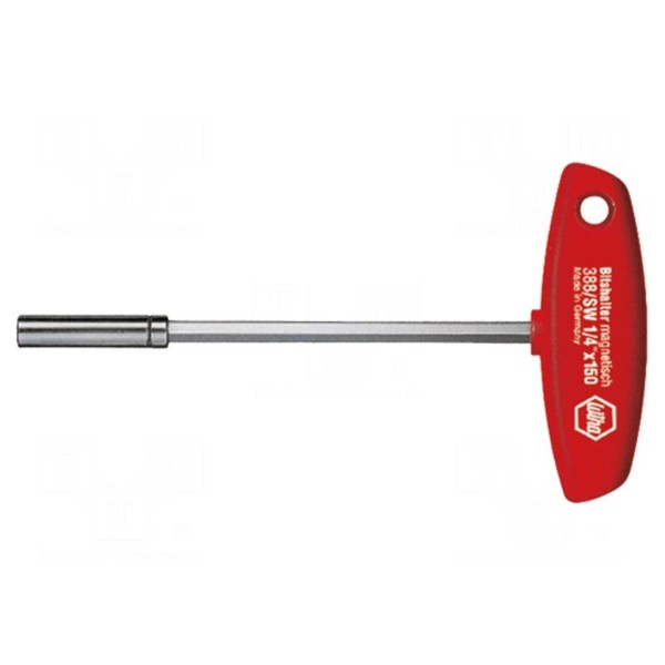 Rękojeść wkrętakowa wyposażona jest w magnetyczny uchwyt o rozmiarze 1/4" przeznaczony do bitów C6,3. Narzędzie posiada ergonomiczną rękojeść w kształcie litery T, która ułatwia przenoszenie momentu obrotowego podczas pracy.