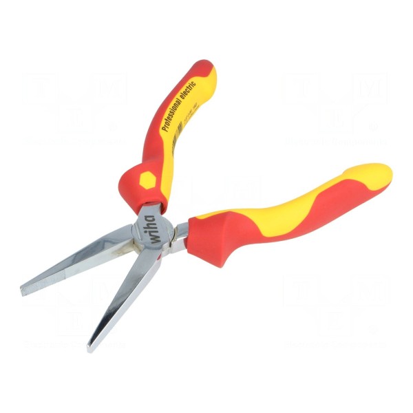 Szczypce płaskie wykonane ze stali przeznaczone są do prac pod napięciem do 1kV AC. Narzędzie charakteryzuje się długością 160mm oraz posiada wydłużone ostrza, które umożliwiają pracę w trudno dostępnych miejscach. Powierzchnie chwytające zostały wyposażone w żłobkowania, co poprawia pewność uchwytu podczas manipulacji elementami.