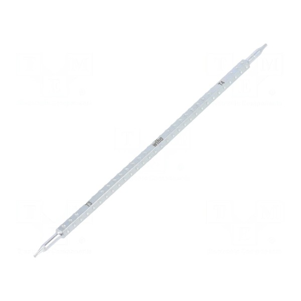 Produkt posiada dwustronną końcówkę o rozmiarach TX03 oraz TX04. Całkowita długość elementu wynosi 120 mm, co pozwala na dostęp do śrub w miejscach o ograniczonej przestrzeni.