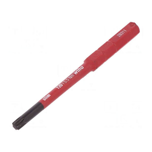 Grot o długości całkowitej 75mm jest przystosowany do pracy z maksymalnym momentem obrotowym wynoszącym 5,5Nm. Uchwyt narzędzia ma przekrój sześciokątny o rozmiarze 6mm, co zapewnia stabilne osadzenie w kompatybilnych systemach rękojeści serii WIHA slim Torque VDE oraz WIHA slim vario.