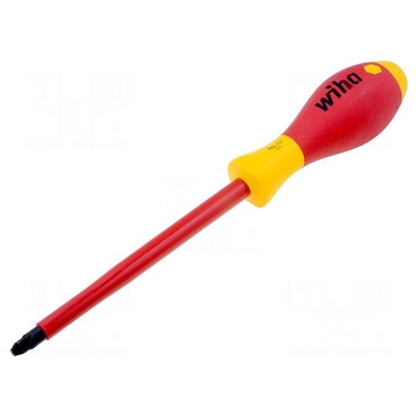 Wkrętak izolowany WIHA przeznaczony jest do prac pod napięciem do 1kV AC. Narzędzie wyposażone jest w grot typu Pozidriv w rozmiarze PZ3, wykonany ze stali. Końcówka ostrza została poddana procesowi czernienia, co wpływa na trwałość użytkową elementu roboczego.