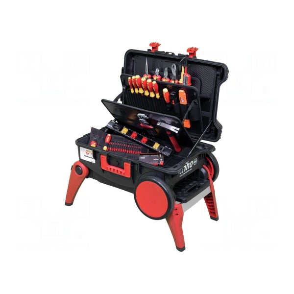 Zestaw narzędzi ogólnego stosowania zawiera 82 elementy przeznaczone dla elektryków. Wszystkie narzędzia w komplecie są izolowane i przystosowane do pracy pod napięciem do 1kV, co potwierdzają normy EN 60900 oraz VDE.