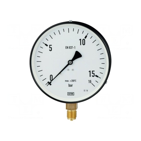 Konstrukcja przyrządu opiera się na obudowie wykonanej ze stali, zapewniającej stopień ochrony IP50. Manometr przystosowany jest do pracy w temperaturze otoczenia od -25 do 60°C, przy czym dopuszczalna temperatura medium wynosi maksymalnie 200°C. Średnica tarczy wskaźnikowej wynosi 100 mm.
