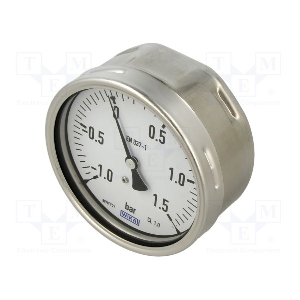 Manometr analogowy wyposażony w rurkę Bourdona przeznaczony jest do pomiaru ciśnienia w zakresie od -1 do 1,5 bar. Urządzenie charakteryzuje się klasą dokładności 1 oraz obudową wykonaną ze stali nierdzewnej o średnicy 100 mm. Przyrząd posiada przyłącze procesowe typu G 1/2 B z tylnym położeniem czujnika.