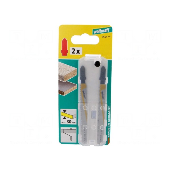 Zestaw zawiera dwa brzeszczoty wykonane ze stali narzędziowej, przeznaczone do cięcia drewna, płyt MDF, płyt wiórowych oraz tworzyw sztucznych. Elementy te charakteryzują się długością roboczą wynoszącą 75mm.