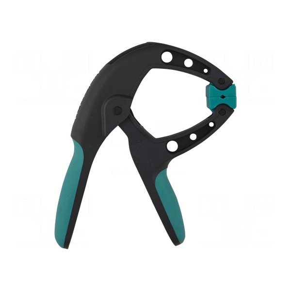 Ścisk uniwersalny o maksymalnym zakresie chwytania wynoszącym 40mm umożliwia stabilne mocowanie elementów podczas prac warsztatowych. Narzędzie zostało wyposażone w sprężynę rozpierającą, która wspomaga pracę w różnych konfiguracjach montażowych.