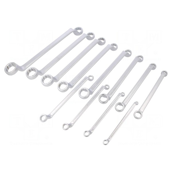 Zestaw 12 kluczy oczkowych ze stali, główka odgięta