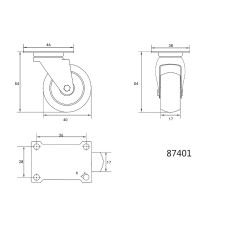 KÓŁKO SKRĘTNE Z CZARNĄ GUMĄ 40MM 87401