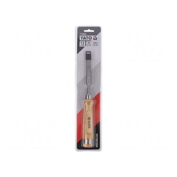 Dłuto o szerokości końcówki 12mm przeznaczone jest do obróbki drewna. Narzędzie zostało wykonane ze stali chromowo-wanadowej, co zapewnia parametry użytkowe dopasowane do pracy w materiale.