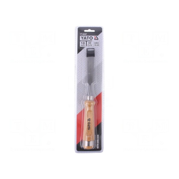 Narzędzie przeznaczone do obróbki drewna wyposażone w ostrze o szerokości 18 mm. Wykonane zostało ze stali chromowo-wanadowej, co zapewnia wymaganą trwałość w trakcie pracy. Twardość ostrza wynosi od 58 do 60 HRC.
