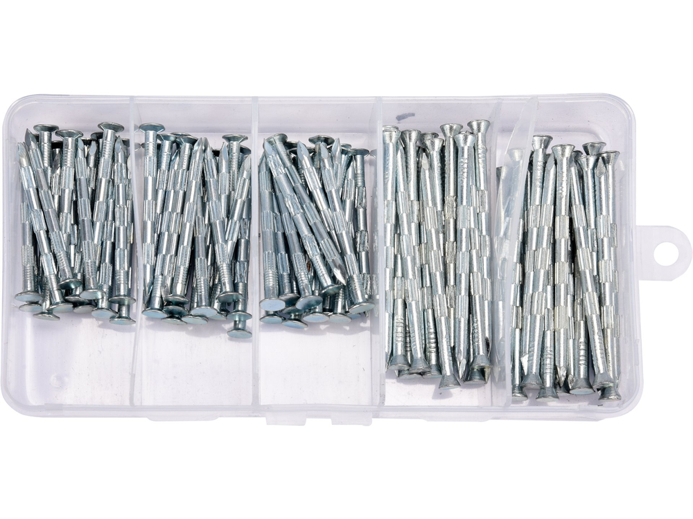 • Wymiary gwoździ: Ø3.5 x 50 mm (66 szt.), Ø3.5 x 70 mm (40 szt.)