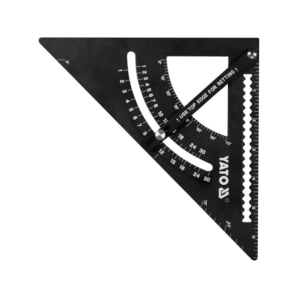 • Wbudowany kątomierz z ruchomym, blokowanym ramieniem do wyznaczania kątów w zakresie 0-90 stopni