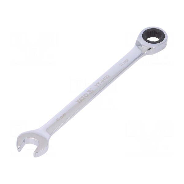 Klucz płasko-oczkowy z grzechotką 11mm, stal chromowo-wanadowa
