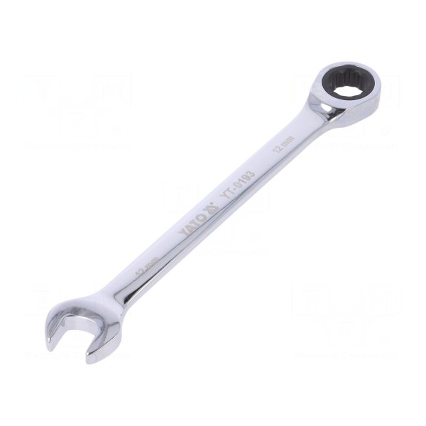 Klucz płasko-oczkowy z grzechotką 12mm, stal chromowo-wanadowa