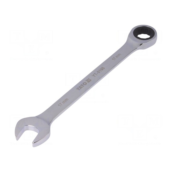 Klucz płasko-oczkowy z grzechotką 17mm, stal chromowo-wanadowa