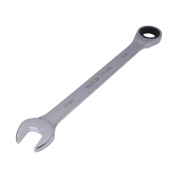 Klucz płasko-oczkowy z grzechotką 32mm, stal chromowo-wanadowa