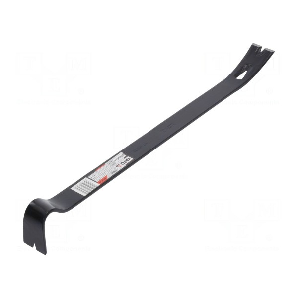 Konstrukcja narzędzia obejmuje wyprofilowaną część przeznaczoną do wyciągania gwoździ. Szerokość elementu roboczego wynosi 35 mm, co pozwala na stabilne oparcie podczas wykonywania czynności z użyciem dźwigni.