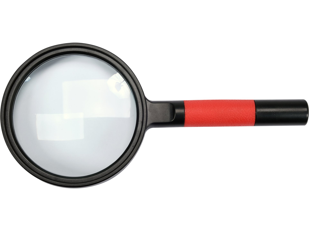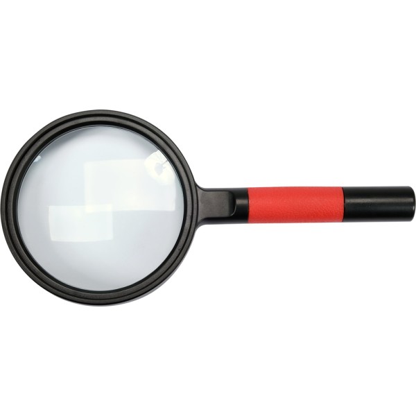 Soczewka o średnicy 75 mm wykonana ze szkła, oprawiona w tworzywo ABS.