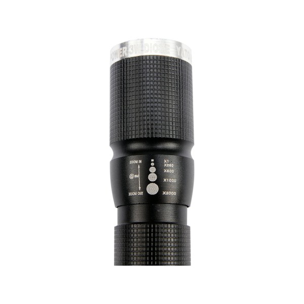 • Regulowany strumień światła 100 lm z funkcją zoom do 200 metrów