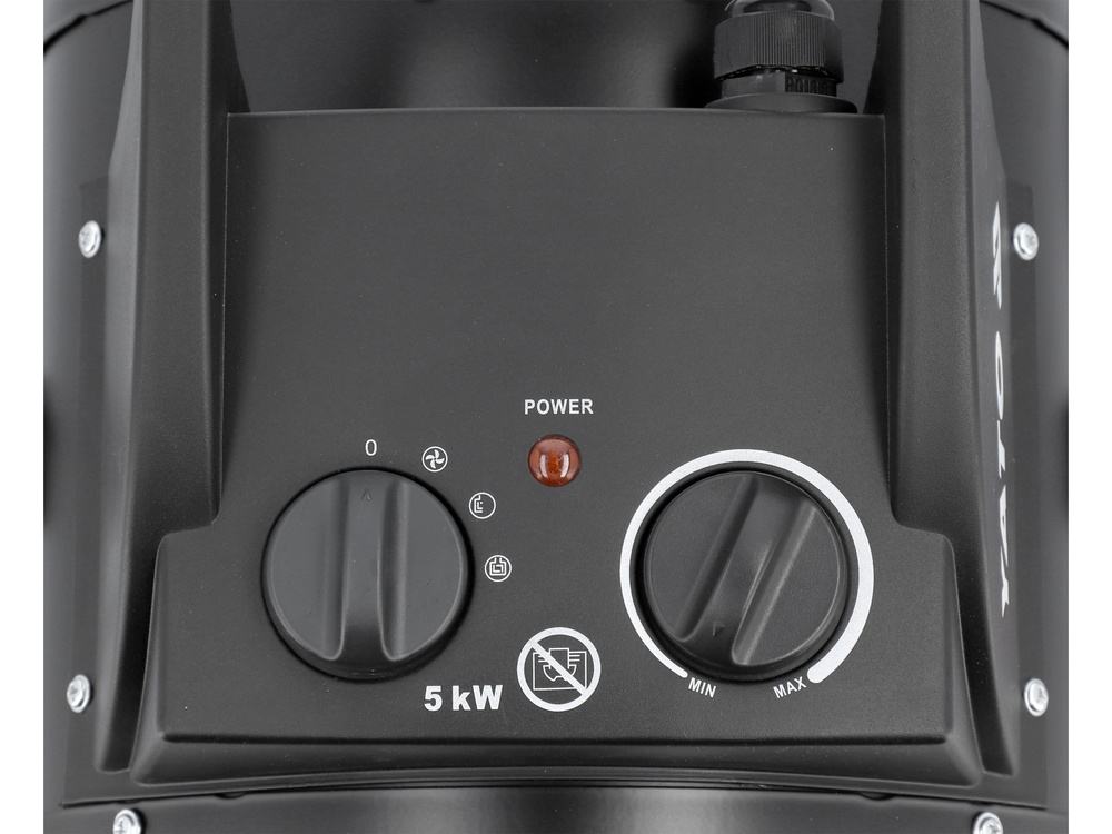 • Trzy tryby pracy: wentylator bez grzałki, grzałka na pół mocy oraz 5000 W