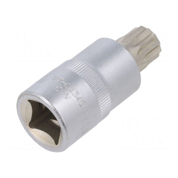 Nasadka spline typu XZN M14 przeznaczona jest do pracy z gniazdami o rozmiarze 1/2". Narzędzie posiada długość 50 mm i cechuje się konstrukcją 12-kątną.