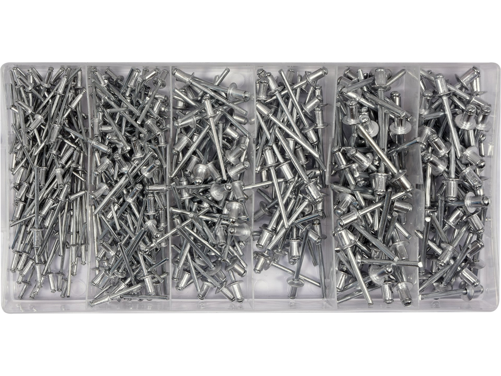 • Rozmiary nitów (średnica x ilość): 2.4 mm x 100 szt., 3.2 mm x 100 szt., 4 mm x 100 szt., 4.8 mm x 100 szt.