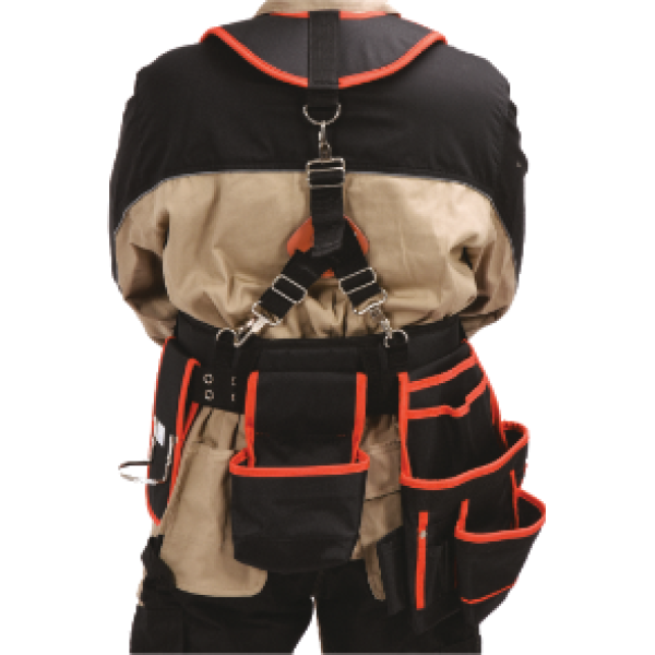 - Konstrukcja: Pas narzędziowy połączony z szelkami nośnymi