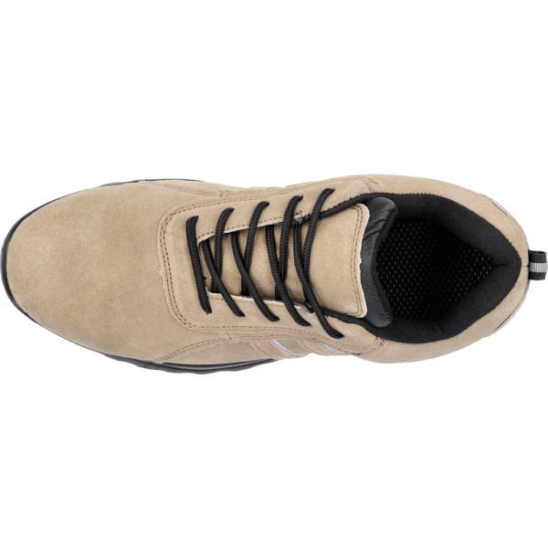 Lekkie półbuty robocze z serii Pera S1P posiadają elastyczną wkładkę antyprzebiciową oraz specjalnie zaprojektowany, nachodzący na czubek buta fragment podeszwy. Cholewkę z naturalnej skóry zamszowej ozdobiono odblaskowymi wstawkami.