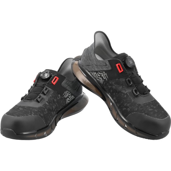 Podeszwa zewnętrzna z TPU pełni funkcję poduszki powietrznej. Wewnętrzna warstwa z ETPU amortyzuje drgania, a antypoślizgowy bieżnik z gumy spełnia wymagania certyfikatu SR. Cholewka wykonana z tkaniny poliestrowej z warstwą TPU oraz zintegrowanym zapiętkiem z PU i termoplastycznego PU. Półautomatyczne sznurowadła działają na pokrętło.