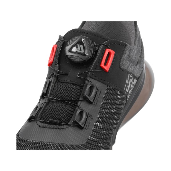 Półbuty z cholewką z tkaniny poliestrowej, warstwą TPU nad palcami oraz zintegrowanym zapiętkiem z pianki PU i termoplastycznego PU. Wyposażone w półautomatyczne sznurowadła na pokrętło.