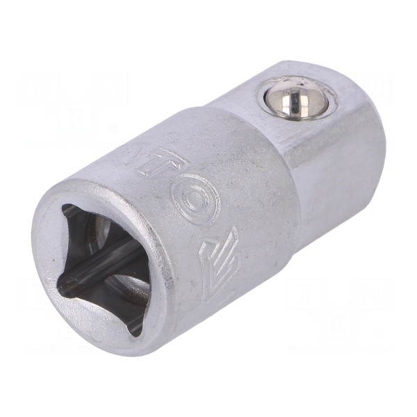 Redukcja YATO o długości 35mm umożliwia zmianę rozmiaru napędu narzędzi, pozwalając na współpracę między elementami o różnych gniazdach. Produkt charakteryzuje się rozmiarem przyłączeniowym 1/2"M oraz 3/8"F.