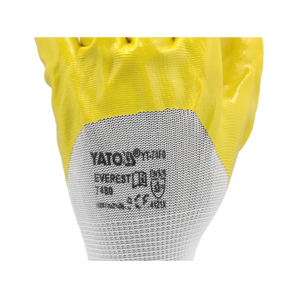 RĘKAWICE OCHRONNE POLIESTROWE POWLEKANE OLEJOODPORNYM NITRYLEM ROZMIAR 10 YT-7481