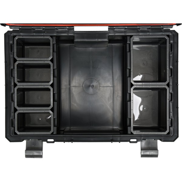 - Zapięcia boczne umożliwiają łączenie z innymi skrzyniami i organizerami systemowymi