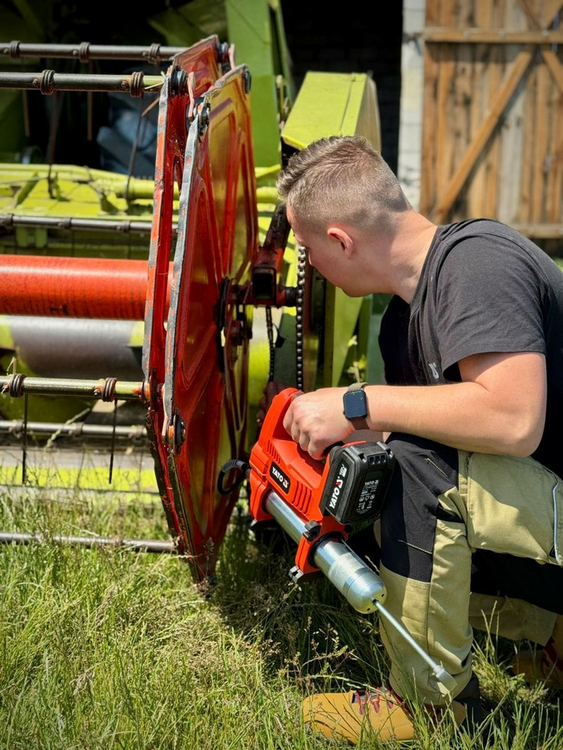 - Zawartość zestawu: Smarownica, elastyczna końcówka robocza, bateria 3Ah, ładowarka 90min
