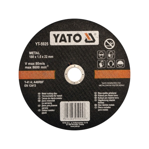 TARCZA DO CIĘCIA METALU 180X1,5X22 MM YT-5925