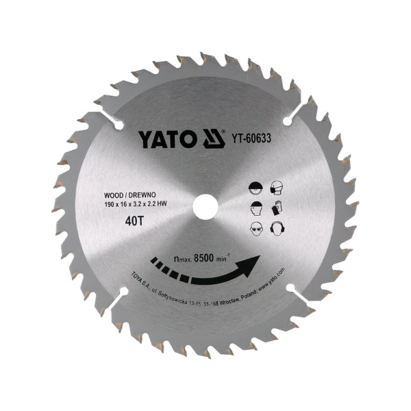 Tarcza widiowa Yato 190 mm, 40 zębów, otwór 16 mm